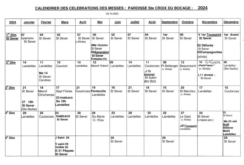 Vous trouverez ci-dessous le calendrier des cérémonies pour l'année 2024 :